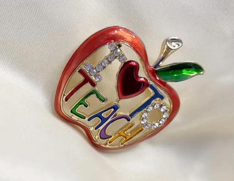 Cute Apple Metal Teacher Pin - "I Love to Teach"